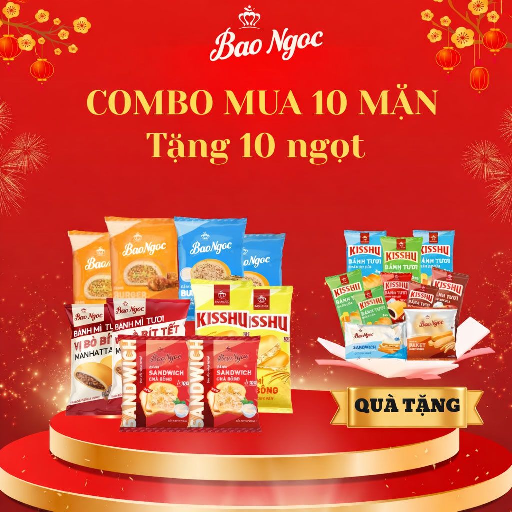 [ 10 mặn tặng 10 ngọt], Bánh mì đầy đủ các vị Bảo Ngọc mix nhân bánh mặn ngọt