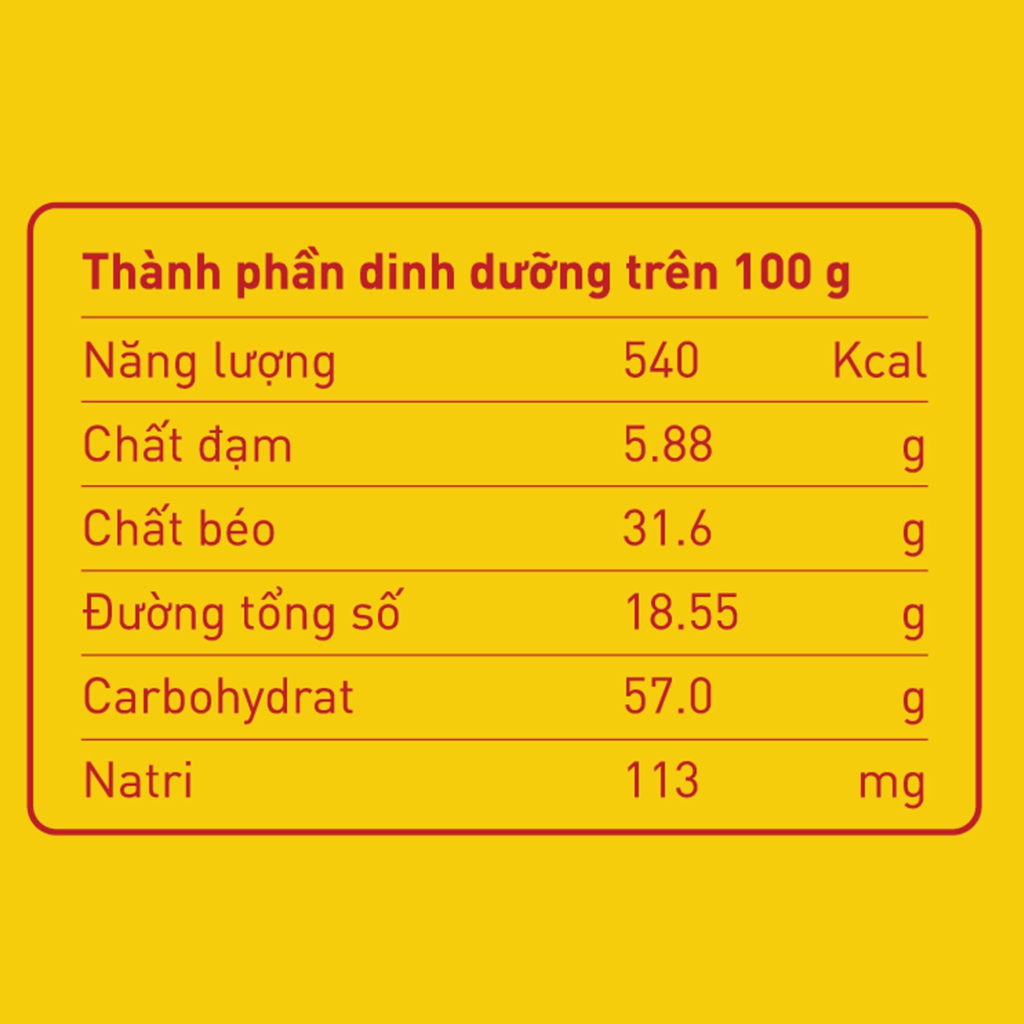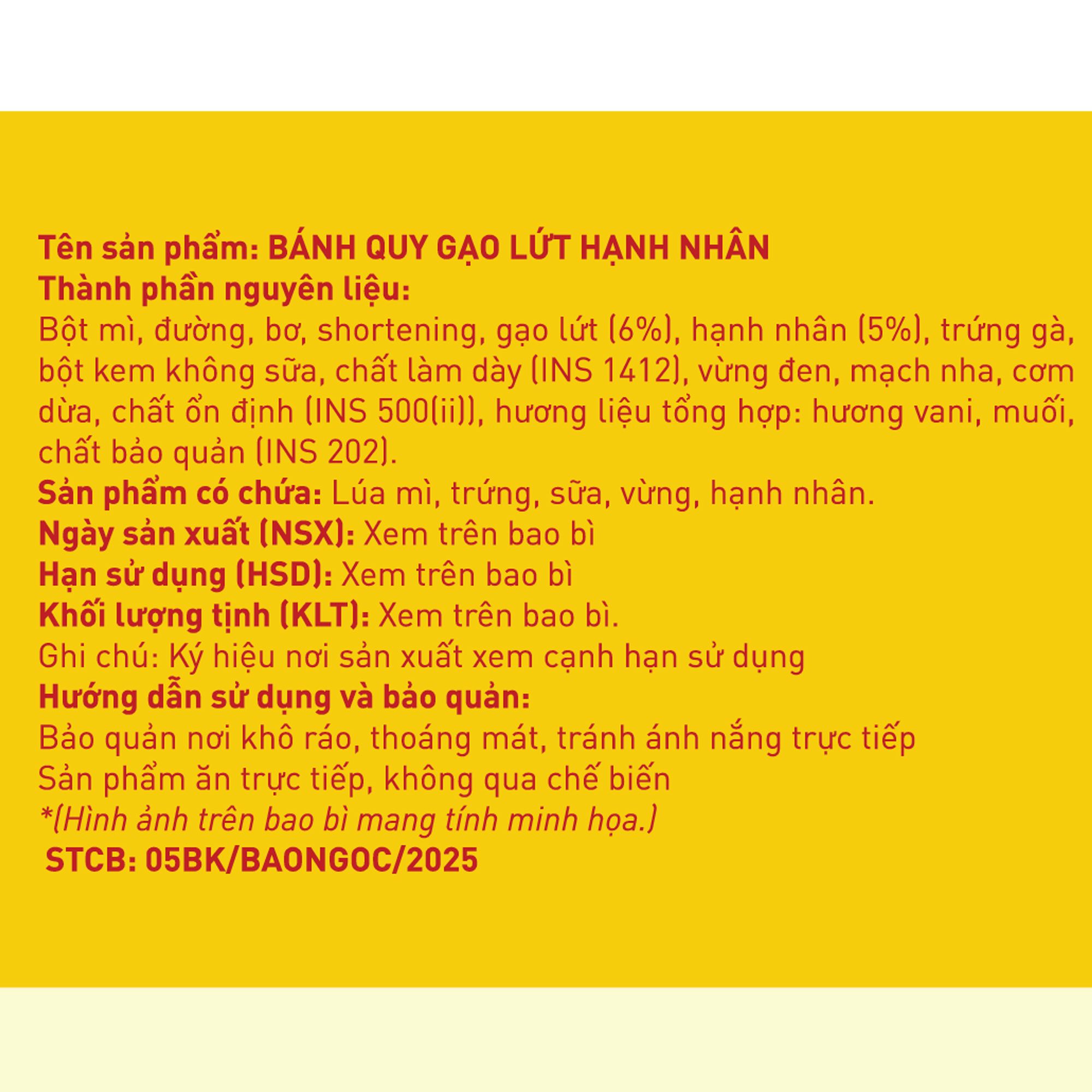 Thông tin cảnh báo: Sản phẩm có chứa lúa mì, trứng, sữa, vừng, hạnh nhân.