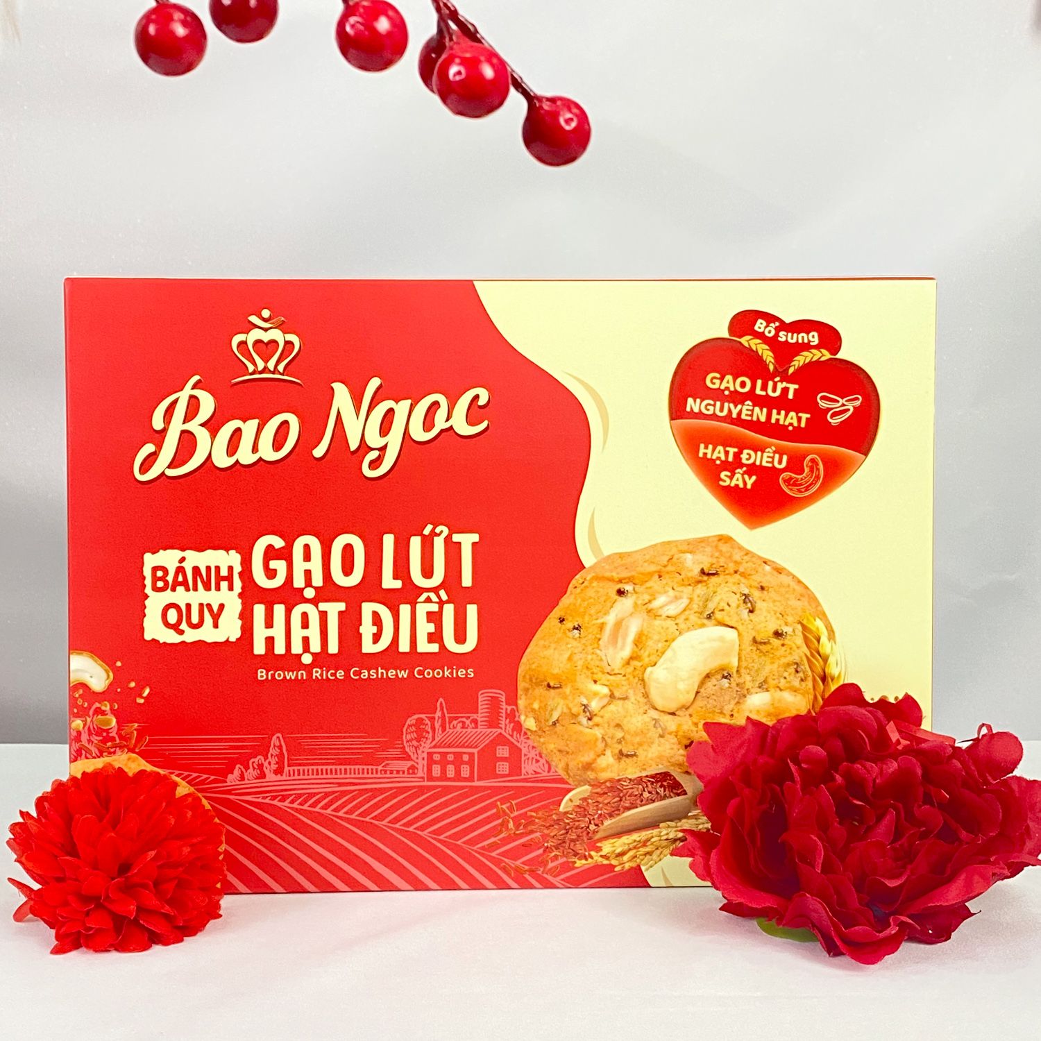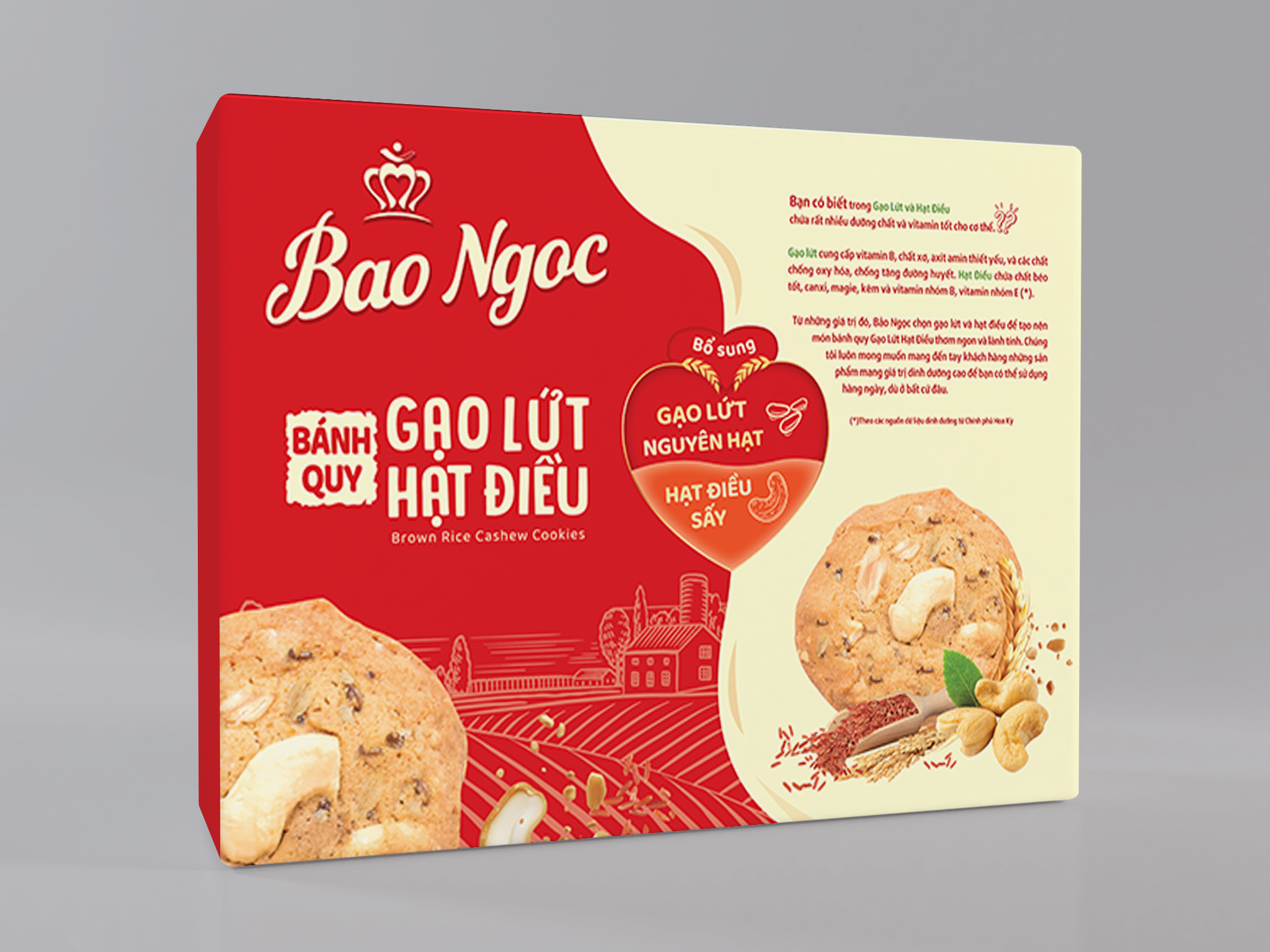Từ những giá trị đó, Bảo Ngọc đã chọn gạo lứt và hạt điều để tạo nên món bánh quy Gạo Lứt Hạt Điều thơm ngon và lành tính. Chúng tôi luôn mong muốn mang đến tay khách hàng những sản phẩm mang giá trị dinh dưỡng cao để bạn có thể sử dụng hàng ngày, dù ở bất cứ đâu.