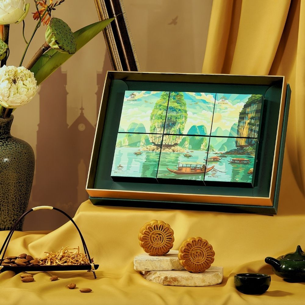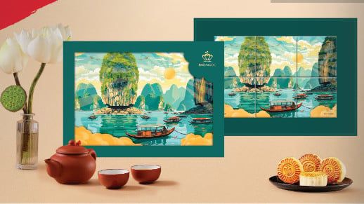 Bánh Trung Thu cao cấp “Non Sông Việt Nam” mô phỏng vẻ đẹp Việt Nam - đất nước của những dòng sông, dòng văn hóa thi ca sâu lắng. Trải dọc đất nước bao la, vùng đất nào cũng lưu giữ một huyền thoại về dòng sông chảy trên mảnh đất ấy. Những dòng sông mang màu xứ sở, mang hồn đất nước. Bức tranh sông cong theo dáng chữ S thân thương, đẹp và sống động hơn tất thảy tạo vật trên đời. Theo dòng chảy của nước, ta còn thấy dòng chảy của kinh tế, giao thương, buôn bán và những nét đẹp lao động đời thường của người dân.
