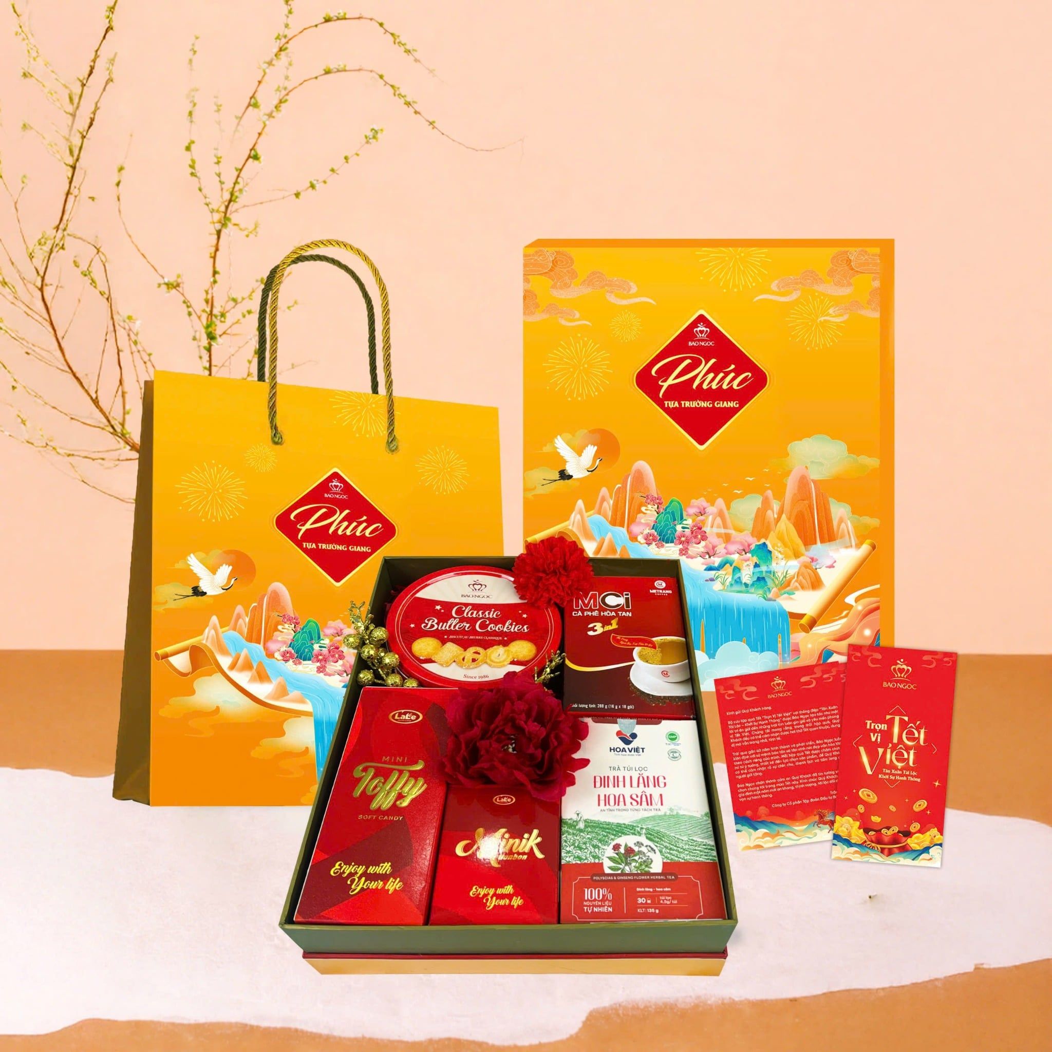 Set quà gửi gắm ước vọng phúc khí miên man như dòng sông dài vô tận, mang đến cho Quý khách một mùa Tết an yên, thịnh vượng và vững bền theo năm tháng.