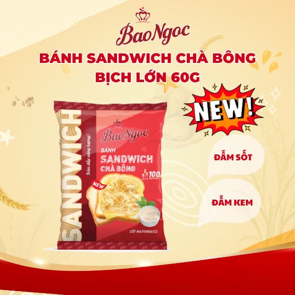 Bạn đang tìm một món ăn nhẹ tiện lợi, ngon miệng, lại đầy đủ năng lượng .Hãy thử ngay bánh sandwich chà bông 60g – phiên bản mới nhất vừa ra mắt, dành riêng cho những tín đồ mê vị ngon đậm đà!